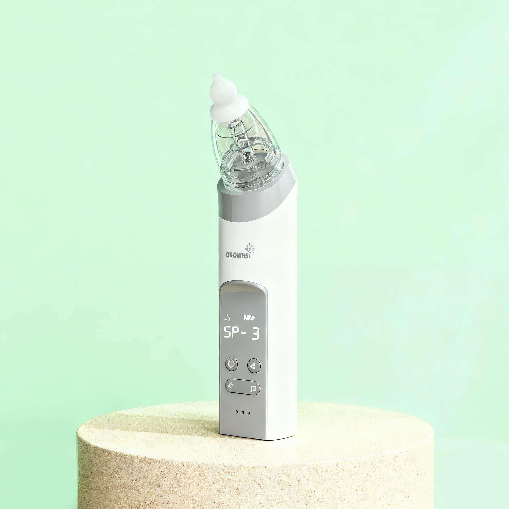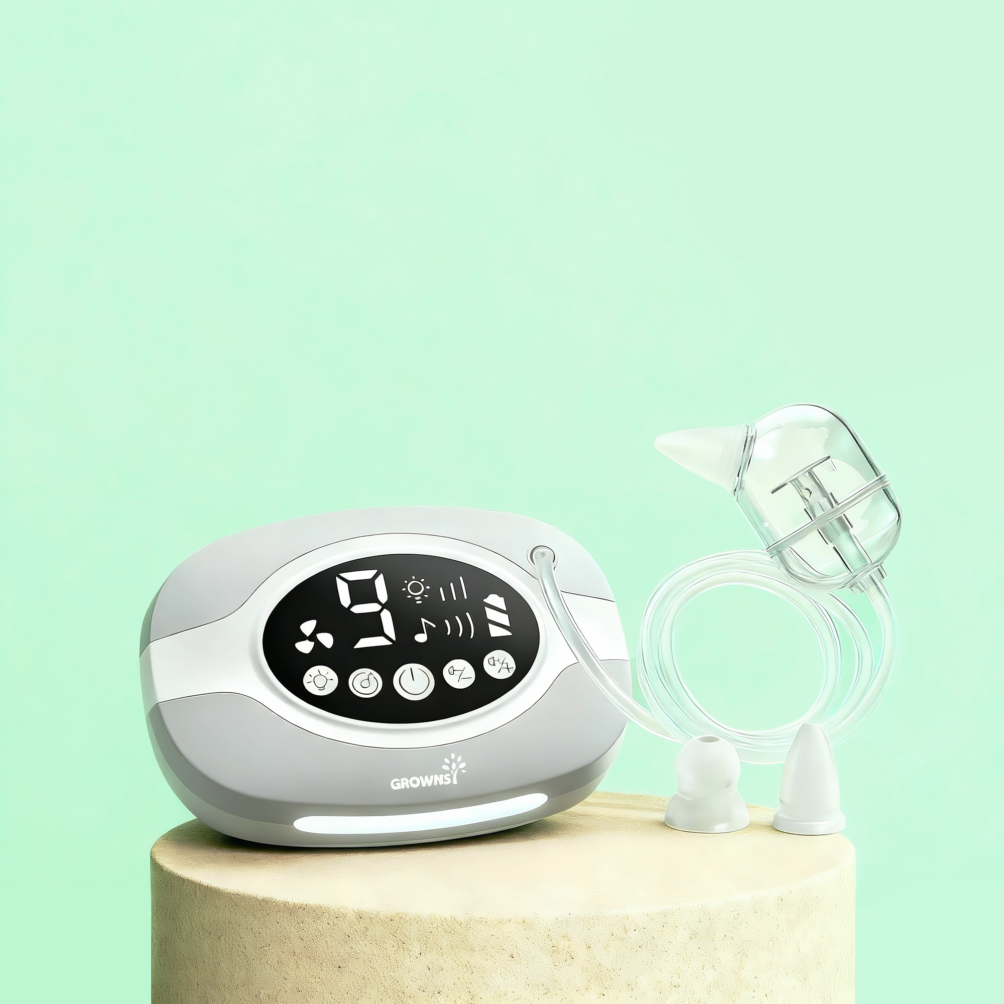 Grownsy Nasal Aspirator features adjustable hospital-grade suction, ensuring quick and effective nasal cleaning for your baby. No more struggling with clogged noses.