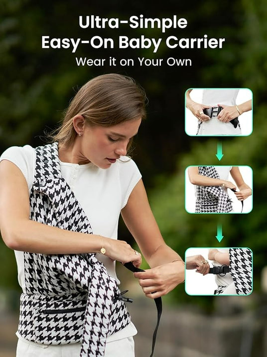 Put on Baby Carrier by Yourself: Designed with absolutely no fuss, this minimalist baby carrier redefines ease. Put it on in seconds with just four intuitive steps-no cumbersome clips, no complicated wrapping. It's by far the simplest baby carrier on the market and a must-have on your baby registry list.
