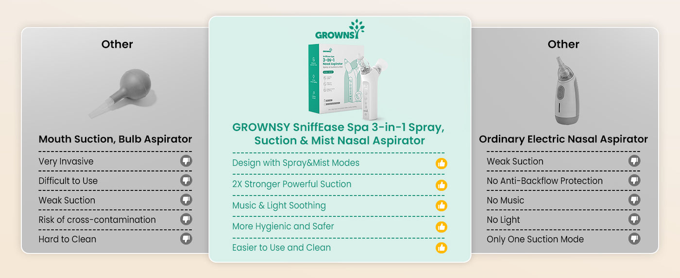 Grownsy SniffEase Spa 3 in 1 Spray, Suction and Micro-Mist Nasal Aspirator